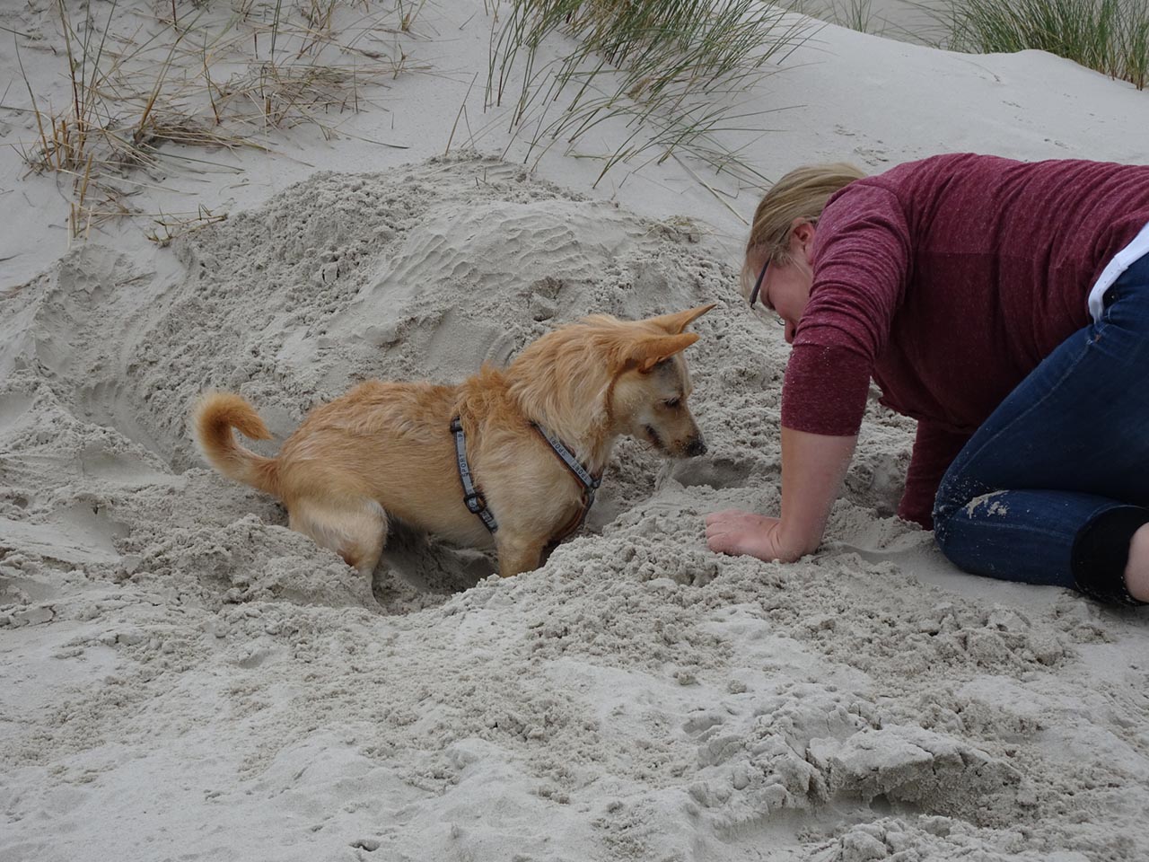Kaya liebt den Strand und den Sand und sie buddelt gerne. Die freie Fläche am Strand animiert sie sehr zum Toben und sie läuft unglaublich gerne mit am Fahrrad. Bewegung ist für sie sehr wichtig. Sie genießt  auch die Ausritte mit den Pferden. Aber auch das Kuscheln darf bei ihr nicht zu kurz kommen. Das muss man auch jeden Tag einhalten :-) Wir sind einfach sehr glücklich!!!