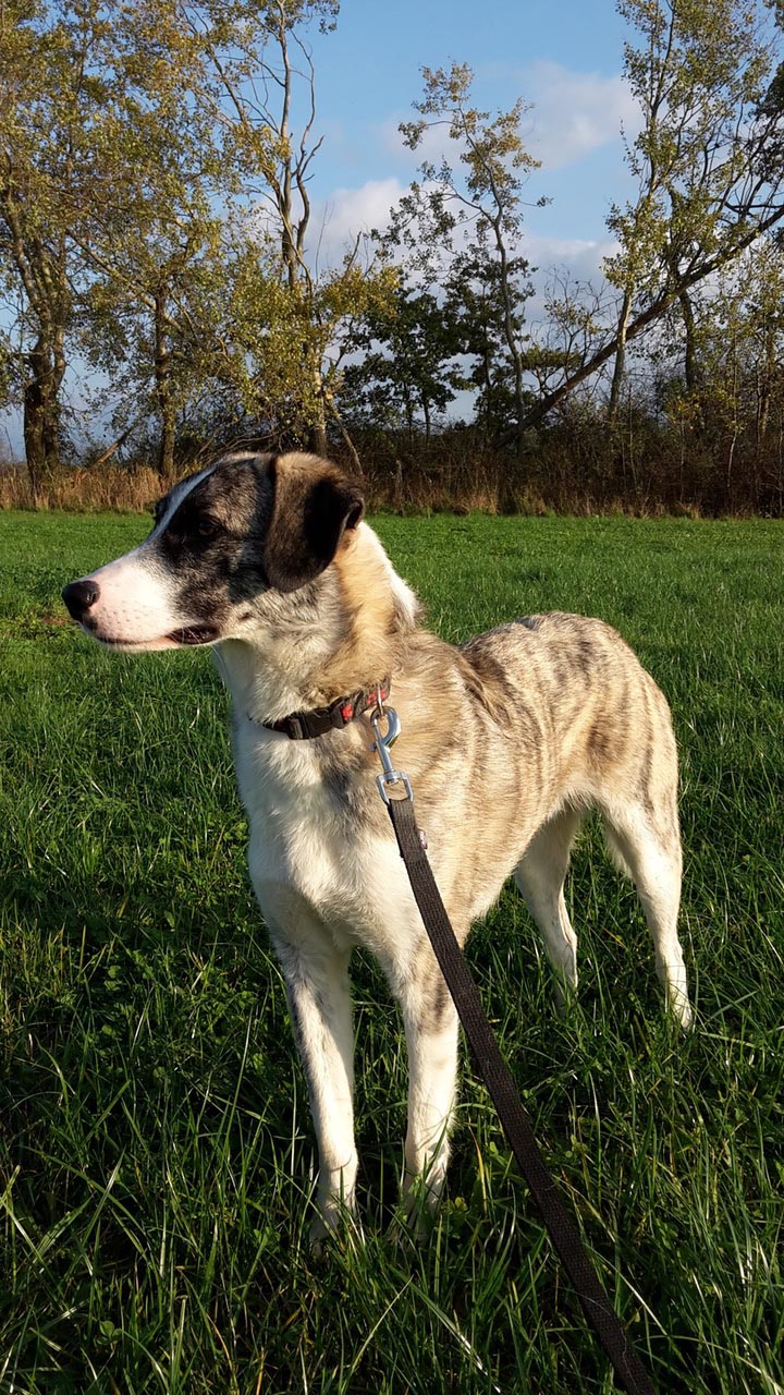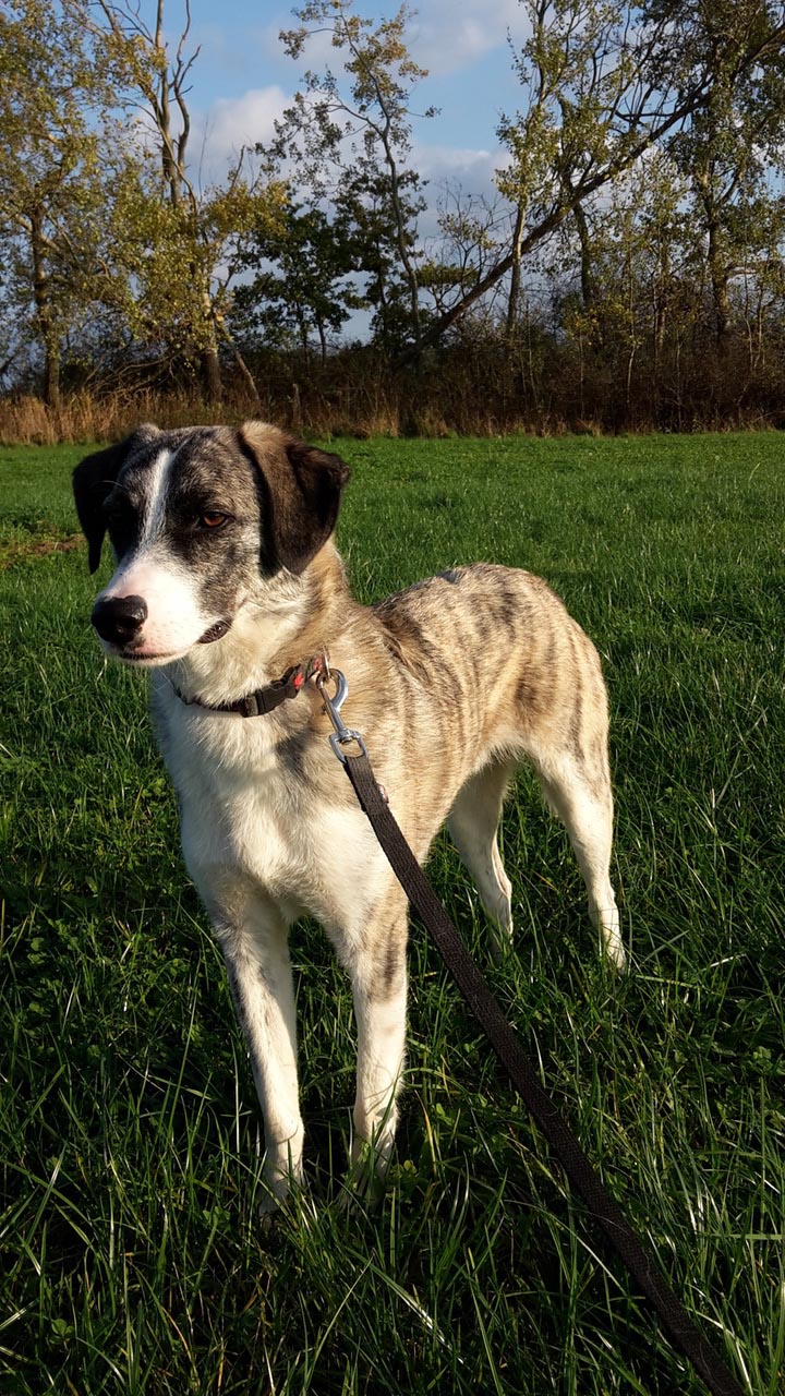 Wir gehen zwei mal am Tag Gassi, die Runde vor dem Schlafengehen liebt er am meisten, da kommt er inzwischen schon von selbst aus seiner Ecke bis in den Flur, wenn er die Leine hört. Auf dem Hof, darf er inzwischen sogar ohne Leine laufen, denn sein Fluchtinstinkt geht ins Haus, ich lasse immer eine Tür offen, so kann er sich zumindest erstmal in die Veranda flüchten, wenn wiedermal ein Traktor über die Strasse holpert.