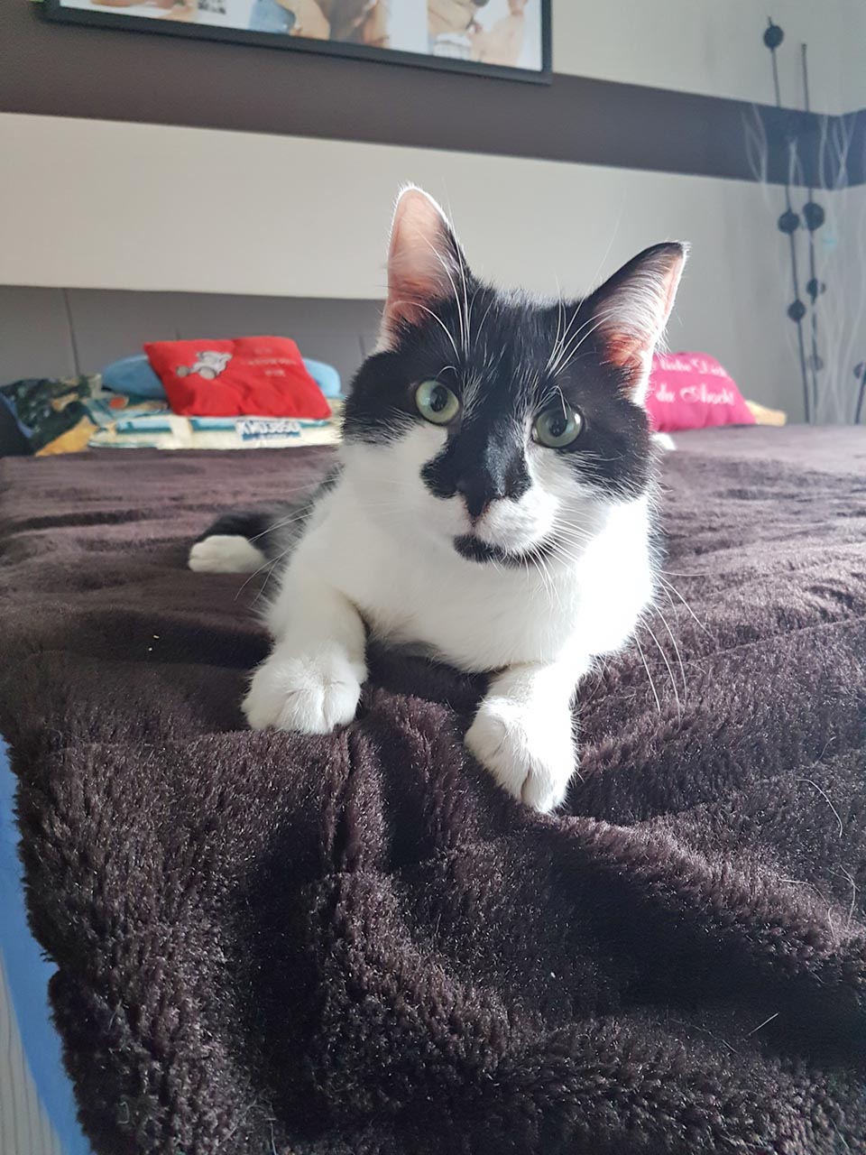 8 Monate ist es jetzt her, dass wir diesen scheuen Kater an uns vorbeiflitzen sahen und wir uns für ihn entschieden haben. Mittlerweile hat er sich zu meinem Schatten entwickelt, folgt mir auf Schritt und tritt, kommt miauend in meine Arme gerannt, wenn ich heim komme und schläft bei mir am Fußende! Er liebt seine Streicheleinheiten und kuschelt viel mit seiner Freundin! Eigentlich wollten wir uns eine weitere junge Katze bei euch holen, nun erwarten wir aber erstmal ein Menschenbaby. Da das Stress und ein erhöhten Lautstärkepegel bedeutet, warten wir bis nächstes Jahr! Schließlich soll es wieder ein scheues Tierchen sein, was es schwerer hat ein zu Hause zu finden!