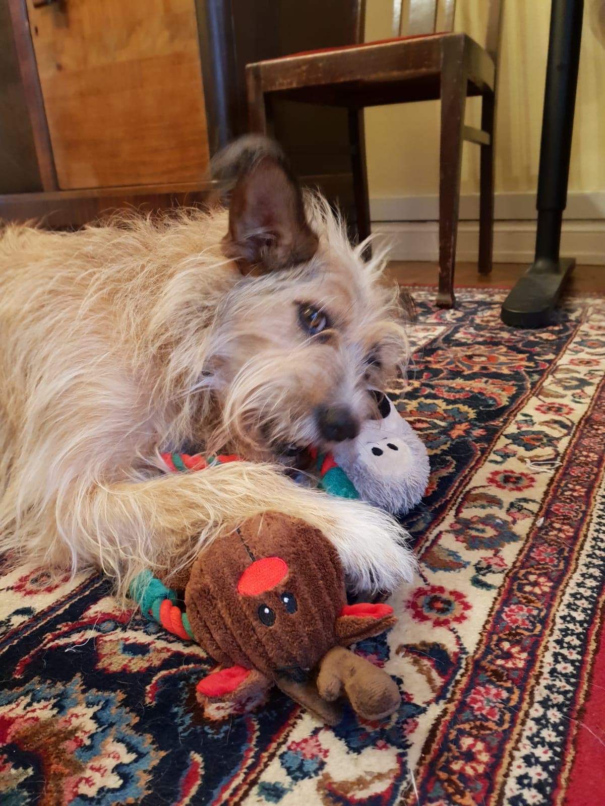 Die ausgiebigen Gassigänge machen mit der ausdauernden Läuferin Pammy einfach Spaß und Pammy hat viel Freude an ihren Kuscheltieren.