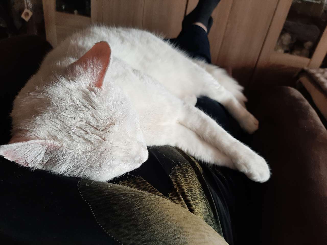 Allerdings schimpft er auch mit mir weil ich am Sessel kratze. Hat Folie rangemacht, aber das stört mich kein bisschen.