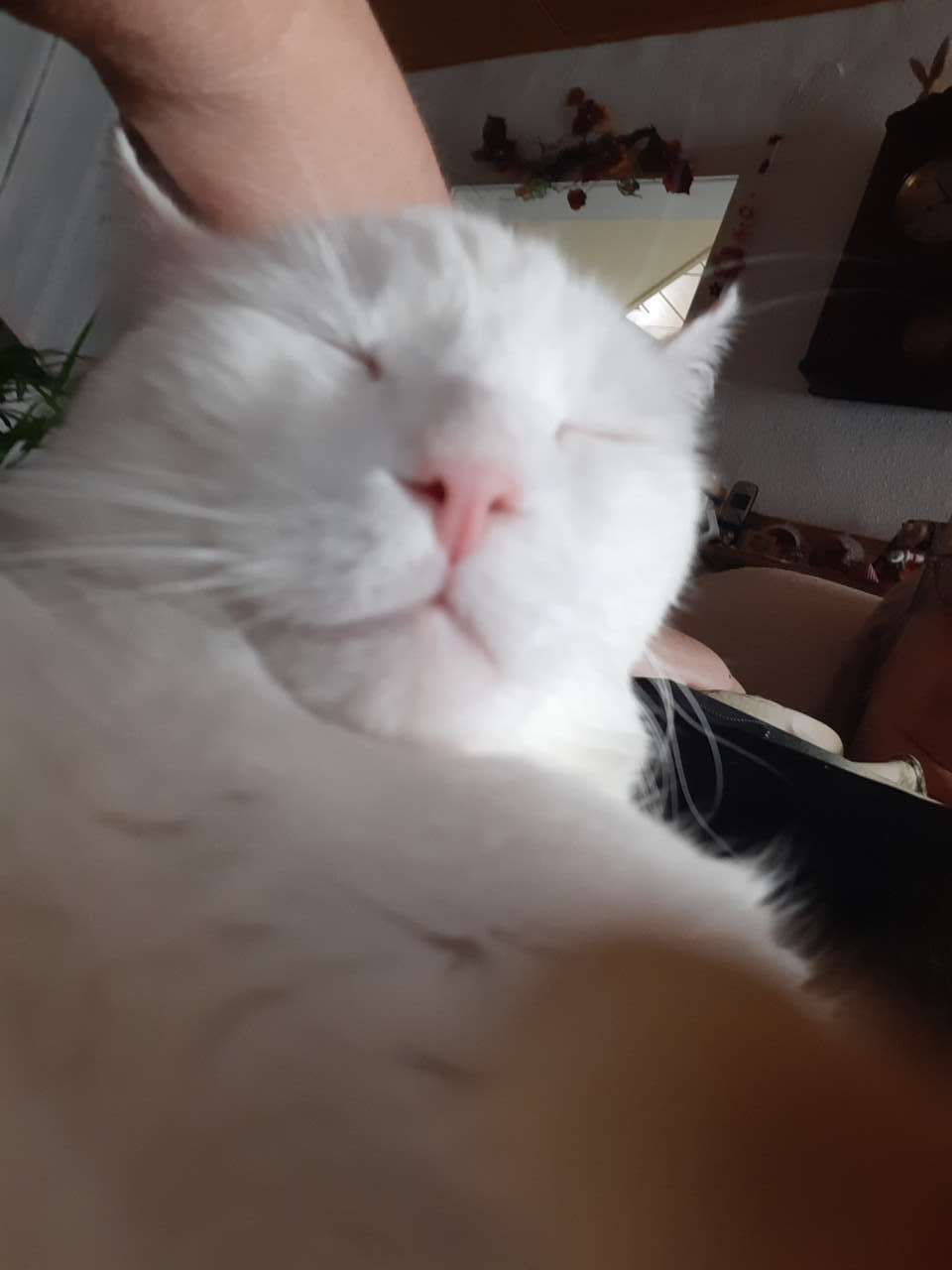 "Hallo, ich bin jetzt schon 7 Monate bei meinem neuen Zweibeiner. Er weiß genau was ich will wenn ich miaue. Essen schmeckt gut. Ich bin der Chef im Ring! Wie ihr seht ist relaxen meine Hauptbeschäftigung.