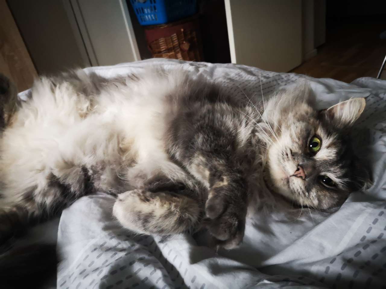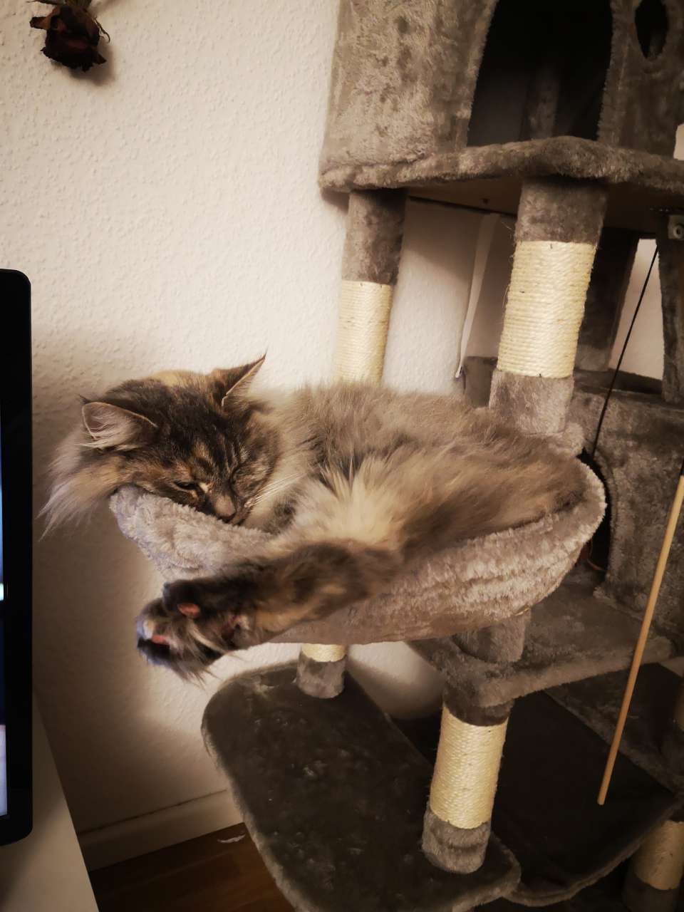 Frau Flauschig kommt uns jeden Tag von der Tür abholen und verabschiedet uns auch immer. Sie frisst sehr gut. Ist sehr reinlich und mega lieb. Auch zu neuen Menschen ist sie sehr lieb. Meine Eltern waren zu Besuch. Sie ist sehr artig und lässt wirklich nur den Kratzbaum die Krallen spüren.