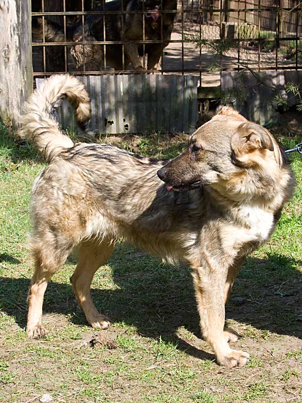 Poldi kam als ganz junger aber verschüchterter Mischling zu uns. Beim Umgang mit unseren Pflegern blühte er auf. So schmeichelte er sich nun bei einer Berlinerin ein, die eigentlich nie und nimmer einen Rüden wollte. Jetzt begleitet Poldi sein neues Frauchen nicht nur zur Arbeit, sondern auch seine Adoptivschwester zum Agilitiy. Diese hat sogar schon Pokale gewonnen. Ob Poldi wohl auch Gefallen am Agility findet und mal auf dem Siegertreppchen landet? Langweilig wird es ihm jedenfalls nicht werden.