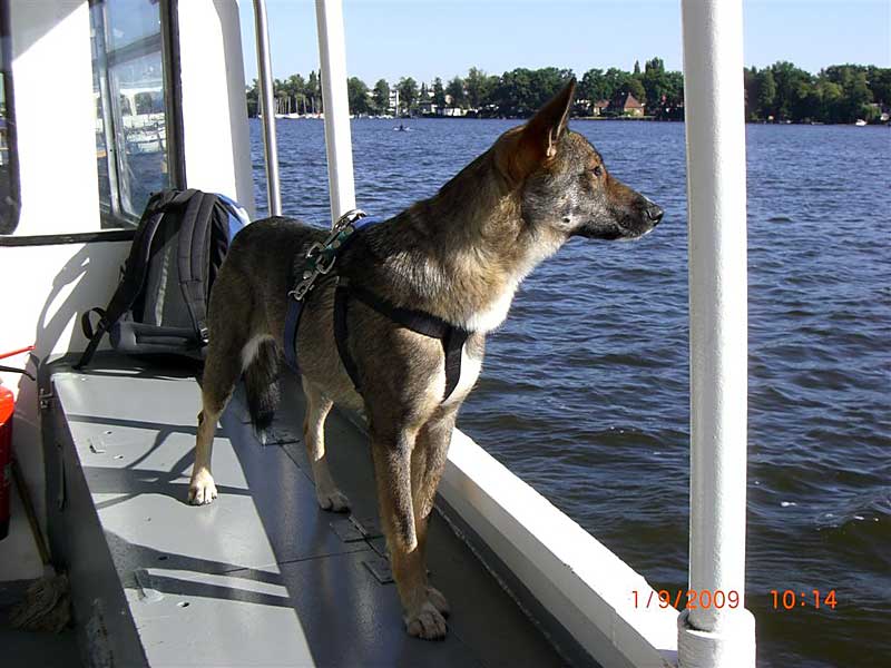Das Wasser liebt sie sehr, genau wie ich, wann immer es geht lasse ich sie frei laufen, sie hat zwar einen großen Aktionsradius, läuft aber nie weg und kommt zwischendurch von sich aus immer wieder zurück um mir zu zeigen das sie noch da ist, aber sehr "beschäftigt" ist. Wir sind viel unterwegs und das genießt sie sehr, besonders wenn die Ausflüge mit einem Picknik verbunden sind. Als Fazit kann ich sagen: man kann auch ohne Hund leben, aber es lohnt sich nicht.