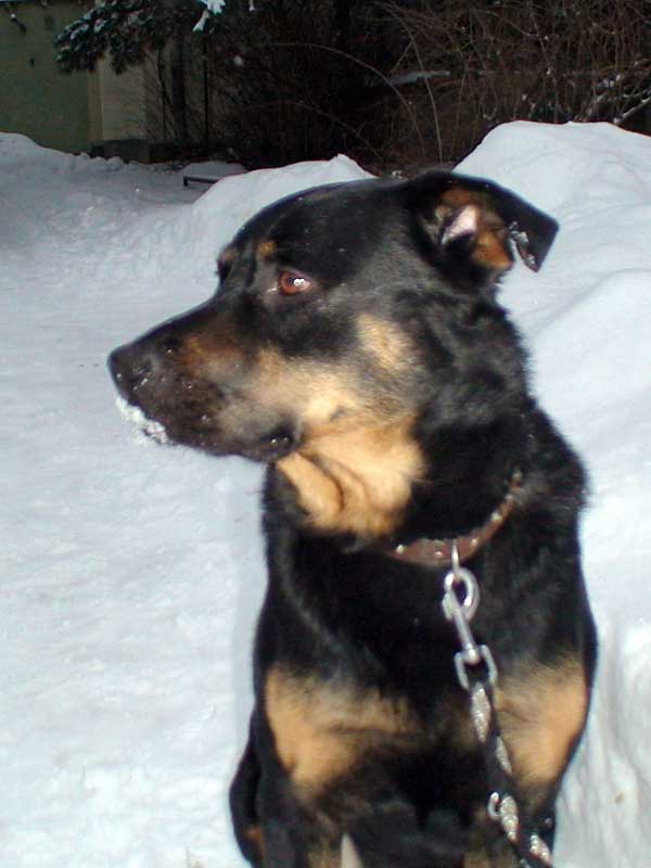 Offensichtlich hatte es der etwa dreijährige Rottweiler-Mix bisher nicht gut getroffen.