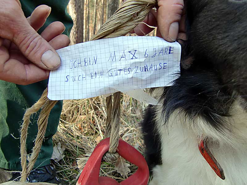 Zur Geschichte von Max - er wurde im Wald angebunden - gibt es demnächst interessante Neuigkeiten unter "Schicksale".