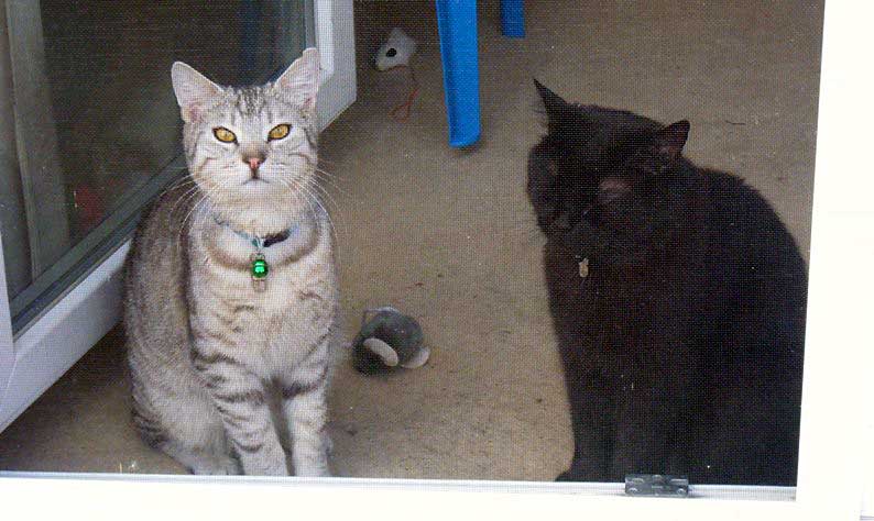 Er war mit der neuen Situation nicht ganz so zufrieden, aber nachdem er gemerkt hat, dass ich doch nicht soooo übel bin, hat er mich jetzt akzepiert und wir fressen zusammen (zu seinem Leidwesen) aus einem Napf (hihihi ich fresse ihm immer alles weg. Er ist halt zu langsam!), obwohl wir jeder einen eigenen Napf haben. Aber was soll's, wenn er sich nicht wehrt!