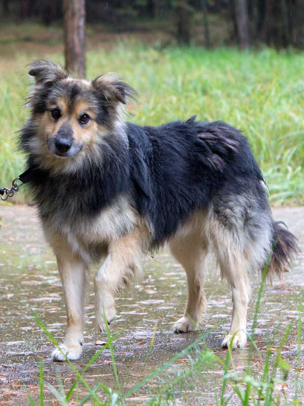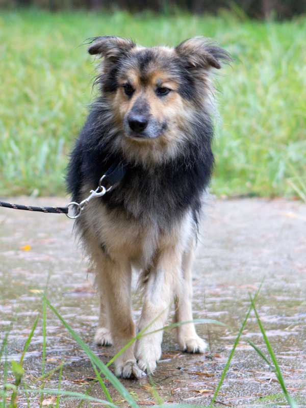 DinkyDinky gefiel das scheußliche Regenwetter beim Fotografieren auch so gar nicht. Schließlich ist man als Collie-Sheltie-Mischling besonders stolz auf ein gepflegtes Plüschfell.