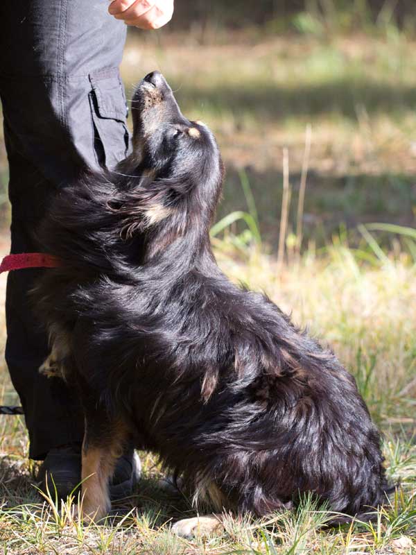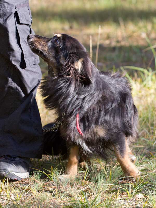 Doch als sich unsere Mitarbeiter vorsichtig, ruhig und leise mit ihr beschäftigten, schloss sie sich sofort an, schmiegte sich eng an und wollte schmusen. Schon beim nächsten Kontakt wedelte sie freudig, wenn sie ihre Pfleger wiedererkannte und lief ganz brav an der Leine.