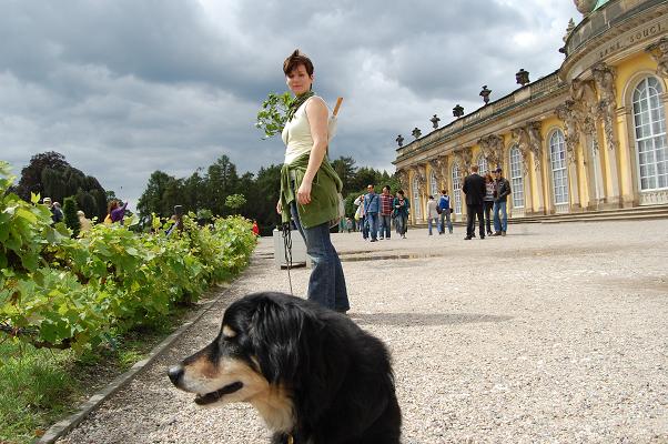 Aber zum Glück ging das ganze Hin und Her nicht ewig so weiter und ich habe ein neues richtiges Zuhause bekommen, wo mein Körbchen wieder einen festen Platz hat. Es steht jetzt in Potsdam. Das ist zwar auch eine Stadt, aber sie ist nicht so groß wie Berlin, und wir wohnen hier ganz in der Nähe von einem weitläufigen Park mit einem Schloss, wo wir oft spazieren gehen.