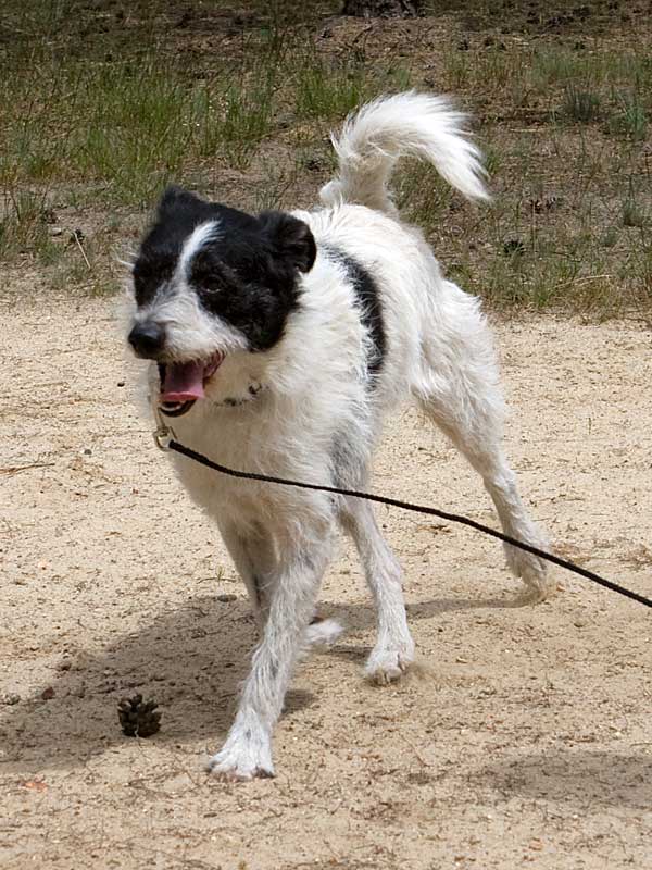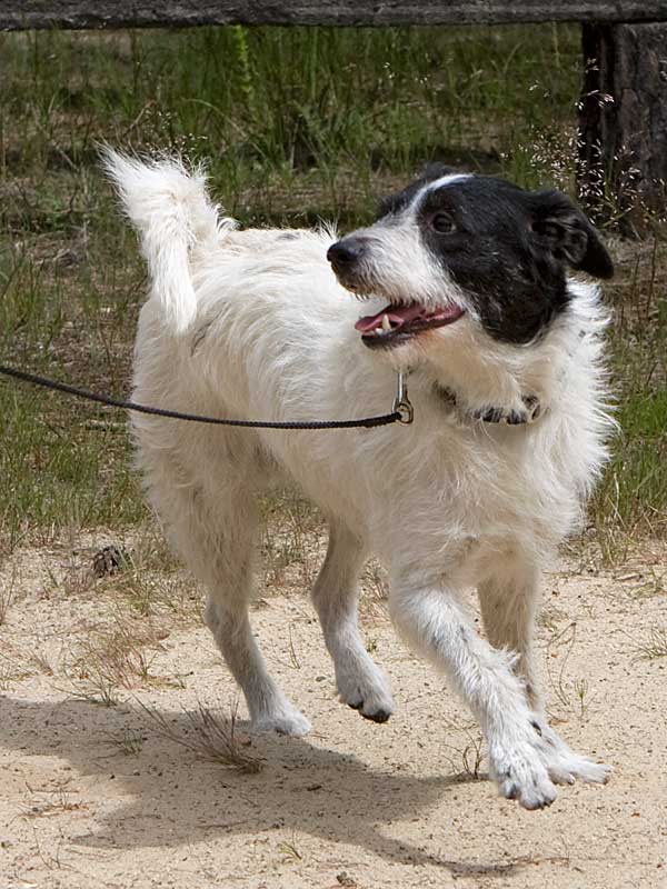 Friedrich ist ein agiler Terriermischling, der früher nicht so toben und spielen durfte, wie ihm das gefallen und gut getan hätte.