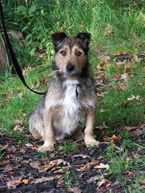sendet Euch Riley aus seiner neuen Heimat. Anfangs war ich etwas unsicher, wo Ihr mich denn hin vermittelt habt, aber seit gut fünf Wochen bin ich hier "angekommen" und so entspannt wie es nur ein Terrier sein kann. Dass mir Pferdeäppel auf dem Feld gut schmecken, ist mittlerweile auch akzeptiert, nur bei Hundeäppeln sehe ich noch gerümpfte Nasen bei den "Alten". Na ja, auch dafür werden sie mich noch lieben, denn ich belausche sie immer aufmerksam und schnappe Satzfetzen auf wie "das mit Riley war die beste Entscheidung im letzten Jahr, auch wenn es etwas anstrengend war". Anbei habe ich Euch ein paar Schnappschüsse dazugelegt, auf denen ich, wie ich finde, sehr gut getroffen bin.