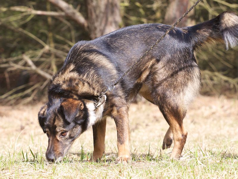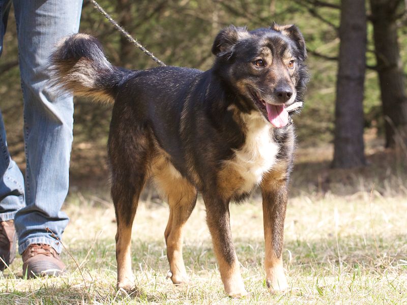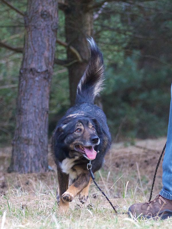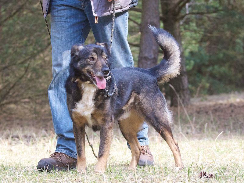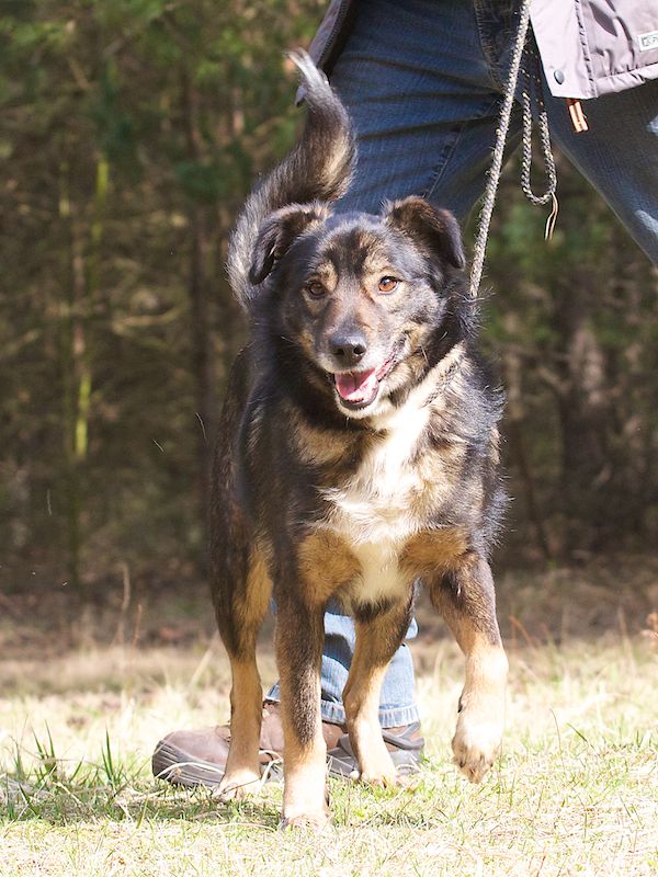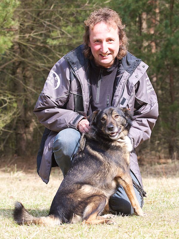 (Anmerkung: Im Foto nicht sein neues Herrchen sondern unser Mitarbeiter Olaf.)