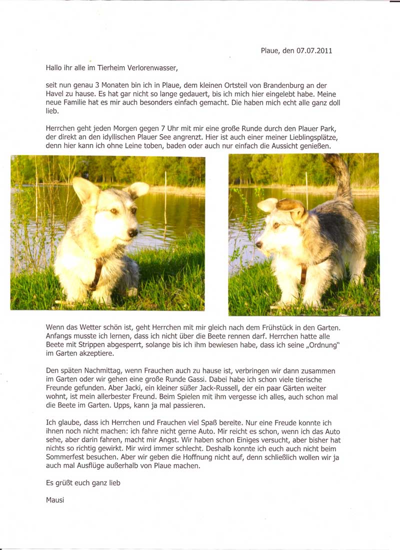 Mausi schickte uns einen Bericht aus ihrer neuen Heimat.