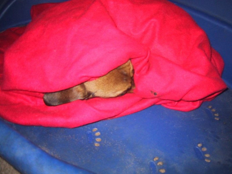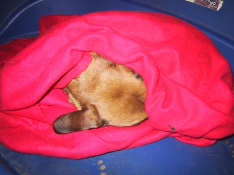 Wir konnten bei ihm noch eine lustige Aktivität feststellen: Gizmo deckt sich in seinem Körbchen allein mit der Decke zu. Das ist abolut süß zu beobachten.