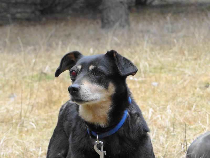 Auf den Fotos erkennt man, dass ihr rechtes Auge voller Blut ist. Dort ist sie auch erblindet. Wir haben sie von einer Augenspezialistin in Berlin untersuchen lassen. Leider kann man nichts mehr gegen die Erblindung tun. Eventuell muss das Auge sogar ganz herausgenommen werden, damit sich dort kein zu hoher Druck aufbaut und Felicita Schmerzen leidet. Die Augenärztin war sich sicher, dass die Einblutung nur von einem starken Schlag auf den Kopf herrühren kann. Man hat also wohl versucht, sie zu erschlagen.