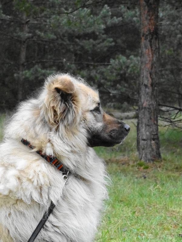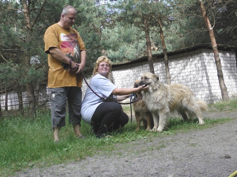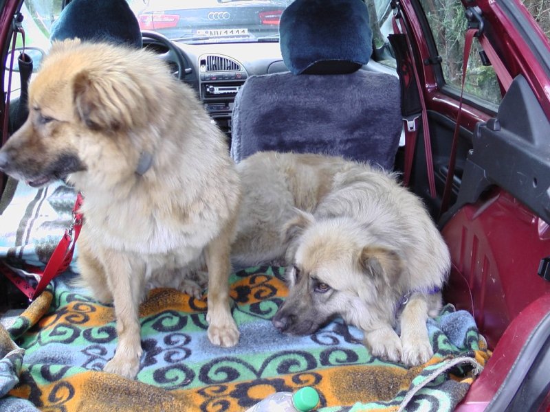 Unser Ehrgeiz  hatte uns zuvor veranlasst, beide vor dem vereinbarten Abholtermin noch zu scheren, damit sie mit ihrem dicken Fell im Sommer nicht so viele Probleme haben. Aber gut gemeint ist nicht immer gut gemacht. Kurz nachdem wir die Schere angesetzt hatten, erhielten wir den Hinweis, das seien doch keine Schäferhunde sondern Owtscharkas (kaukasische bzw. zentralasiatische Hütehunde). Diese Rasse ist daran gewöhnt, sommers wie winters in den Bergen allein auf Herden aufzupassen. Dabei dient das lange Fell als Schutz. Im Winter einleuchtend. Aber auch im Sommer ist es notwendig, damit die Sonne - bzw. die UV-Strahlung - nicht die Haut verbrennt. Zum Glück haben wir nicht ganz kurz geschoren und die neuen Besitzer werden nun alles Weitere richten.