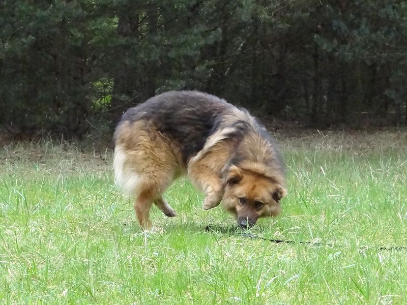 Wenn Max mit Robin gemeinsam auf Tour geht, laufen beide gut an der Leine und es gibt keine Probleme. Aber sobald Robin nicht da ist, geht bei Max kaum noch etwas. Er schnüffelt und pullert nicht, sondern schaut nur, wo Robin sein könnte. Max hat trotz seiner Größe gar kein Selbstbewusstsein. Wenn Robin da ist, lebt Max richtig auf und wird lockerer. Ist Robin nicht zugegen, wird Max schnell panisch und erschrickt bei jedem Geräusch.