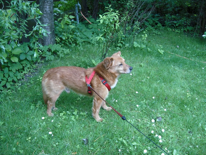 Er hat sich sehr gut eingelebt. Der Hund ist ein Prachtstück! Absolut pflegeleicht, kein Kläffer, nicht freßgierig, sehr liebebedürftig, schläft viel und liebt den Garten zum Schnüffeln. Einziger Nachteil, er ist ein Frühaufsteher und mag gerne um 4.30 Uhr Gassi gehen. Daran arbeiten wir aber noch.