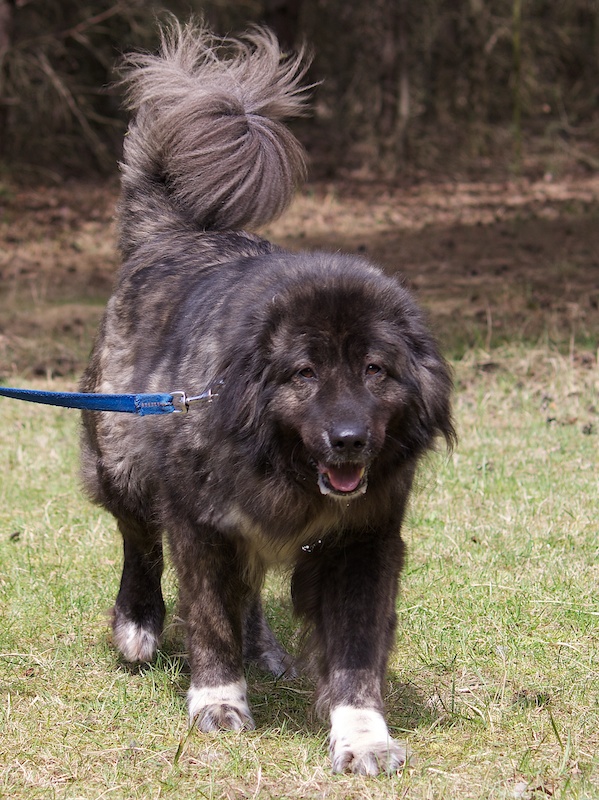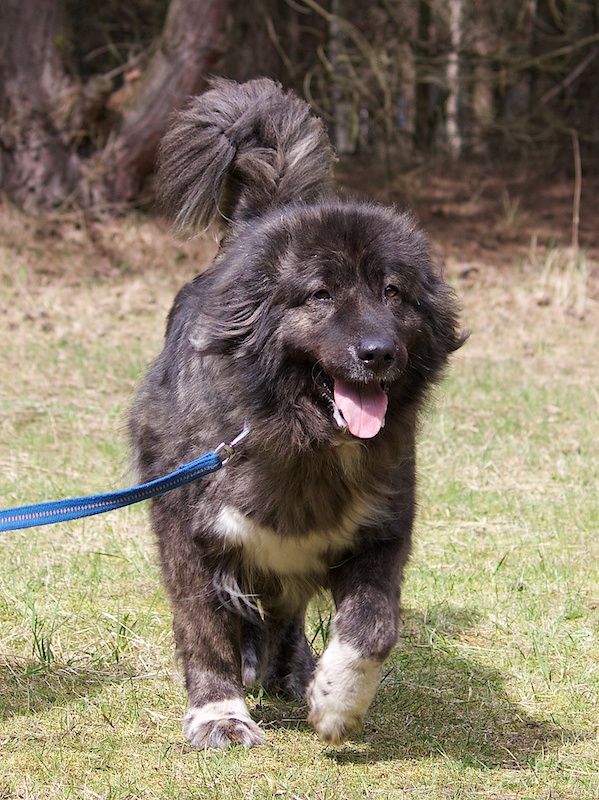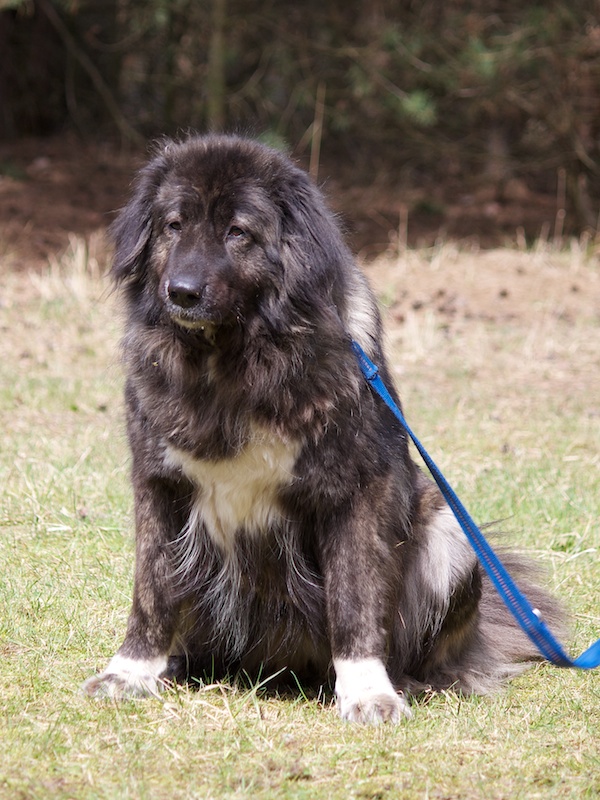 Lilly ist eine beeindruckend hübsche Hündin. Ihre Vorfahren mischen sich aus Kaukasen und Leonbergern.