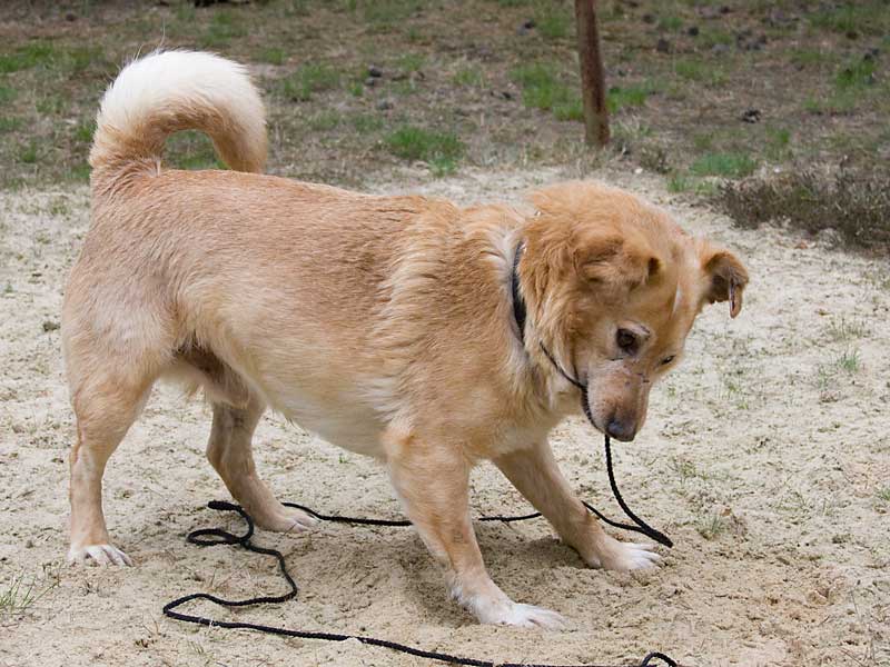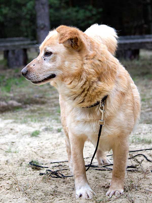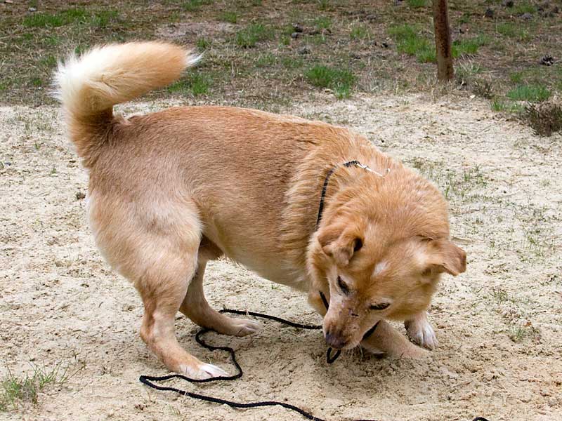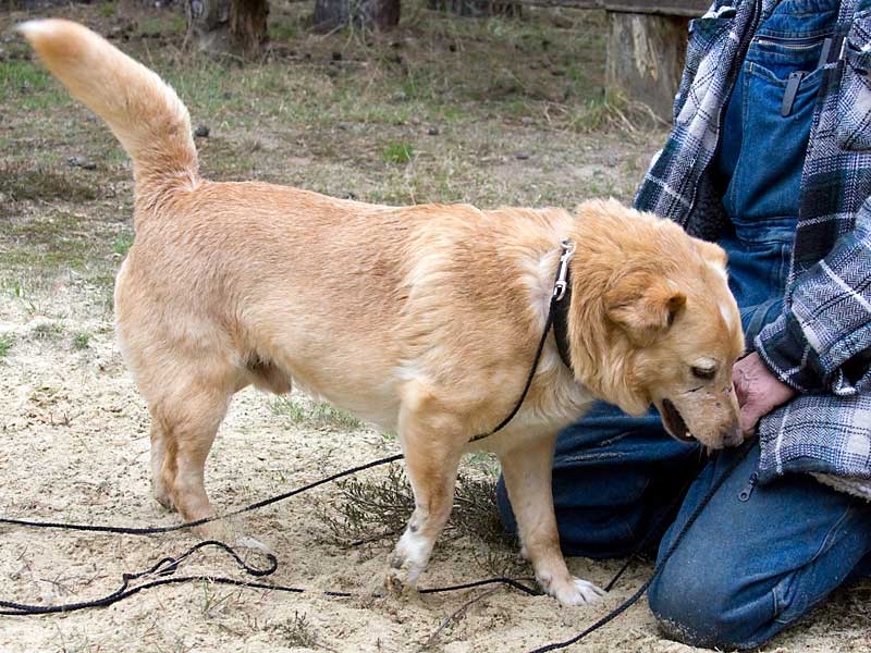 Als er zu uns kam, hatte er Probleme mit einem Vorderbeinchen und humpelte: das Ellbogengelenk war ausgehakt. Die Operation, die wir in einer Spezialpraxis durchführen ließen, brachte leider nicht den gewünschten Erfolg. London schien immer noch Schmerzen zu haben, so dass wir leider an eine Amputation des Beines denken mussten. Doch vorher wollten wir noch Physiotherapie ausprobieren.